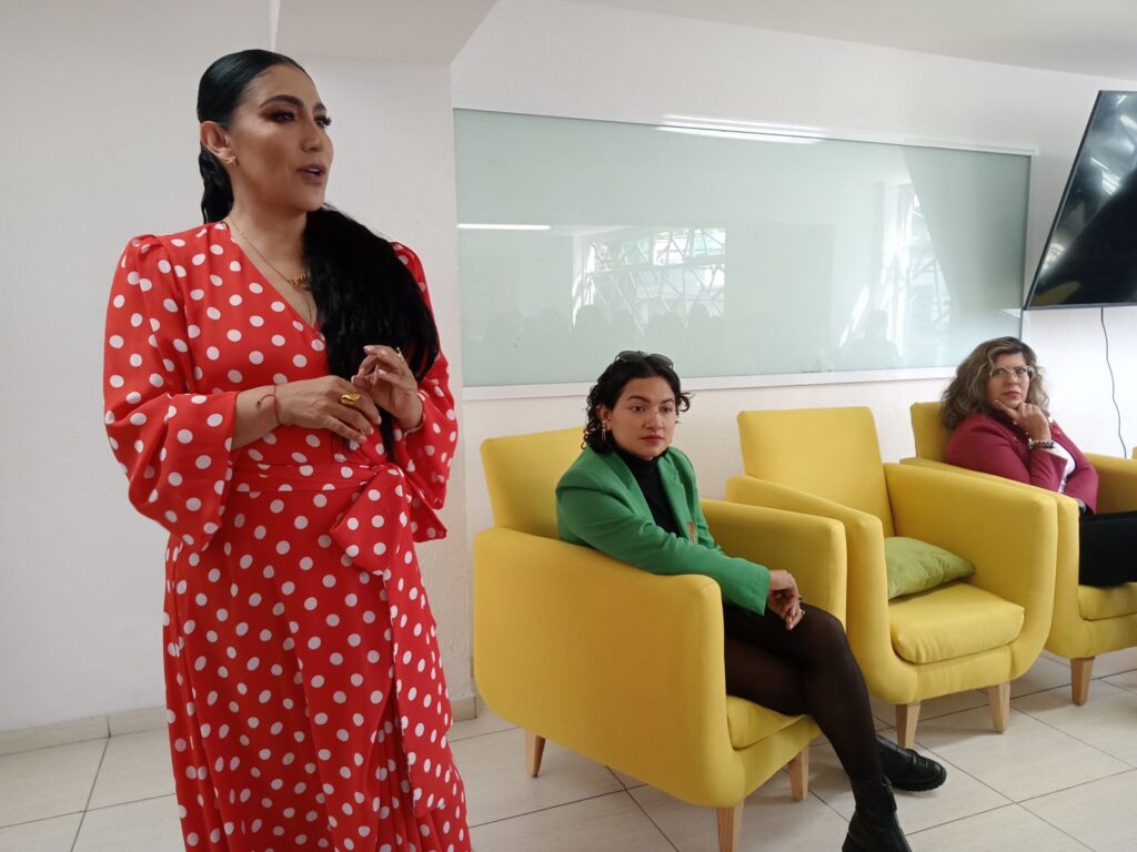 Durante la ponencia 25N Sociedad Resiliente Ante La Violencia Que Sufren las Mujeres ¿Qué Podemos Hacer? Acompañaron a Claudia Montesinos Abrego la activista Yoselin Paredes; la rectora de UCIC, Angélica Mazari y la estudiante de esta institución en la carrera de Diseño de Interiores, Valeria Guadalupe Ayala Sanvicente.