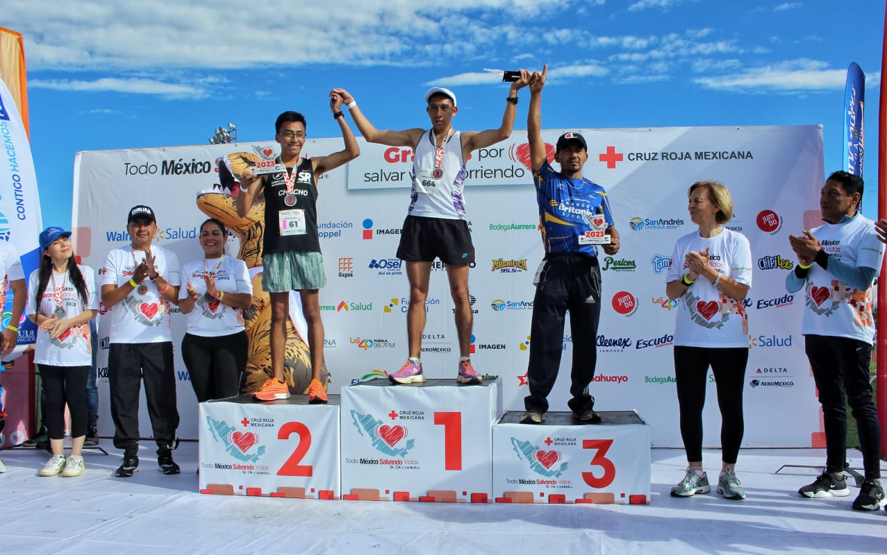 En la distancia de 5 kilómetros, el primer lugar varonil quedó en poder a Jesús Noé Sosa con tiempo de 20 minutos y 50 segundos; en segundo lugar, el representante de Cruz Roja Mexicana Puebla, Carlos Tlapa con tiempo de 21 minutos y 32 segundos y Santiago Salazar con 21 minutos y 55 segundos.