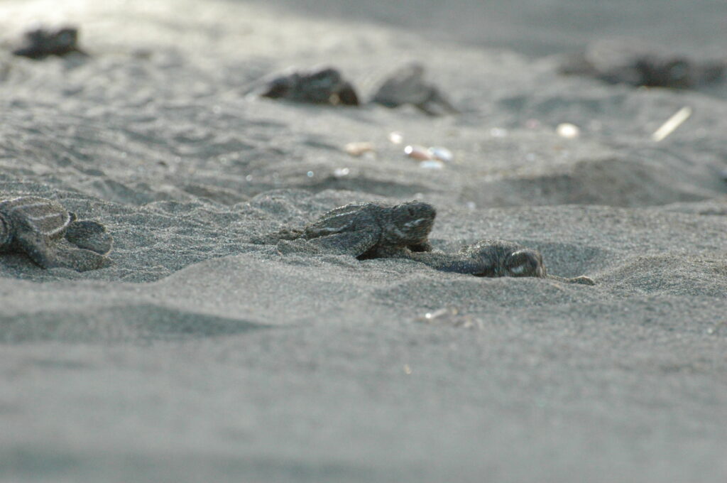 © Luis Lach «Tortugas laúd eclosionando y saliendo hacia el mar».