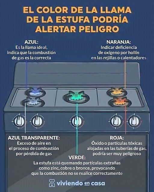 El único color de flama que debería salir en las estufillas es azul, por lo que si sale de otro color (amarillo, verde o roja), deberías preocuparte y verificar por qué está pasando. Aquí puedes verificar qué significa cada color de flama que sale de tu estufa.
