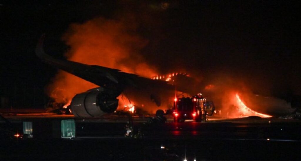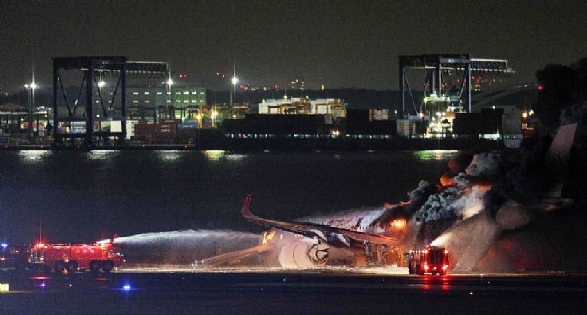FUERTES IMÁGENES: Choca y estalla avión de pasajeros en aeropuerto de Tokio