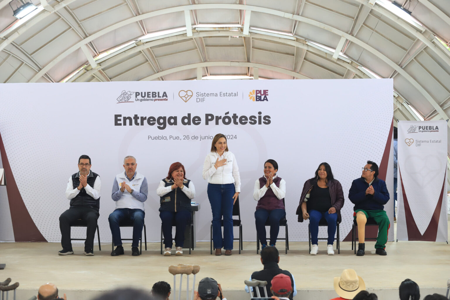 La presidenta del patronato del Sistema Estatal DIF, Gaby Bonilla Parada, encabezó la entrega de 40 prótesis para personas de diferentes municipios del estado, en donde destacó que el organismo rebasó la meta establecida en este tipo de apoyos y anunció que para este año se estarán entregando más de 150 prótesis con una inversión de más de 10 millones de pesos.