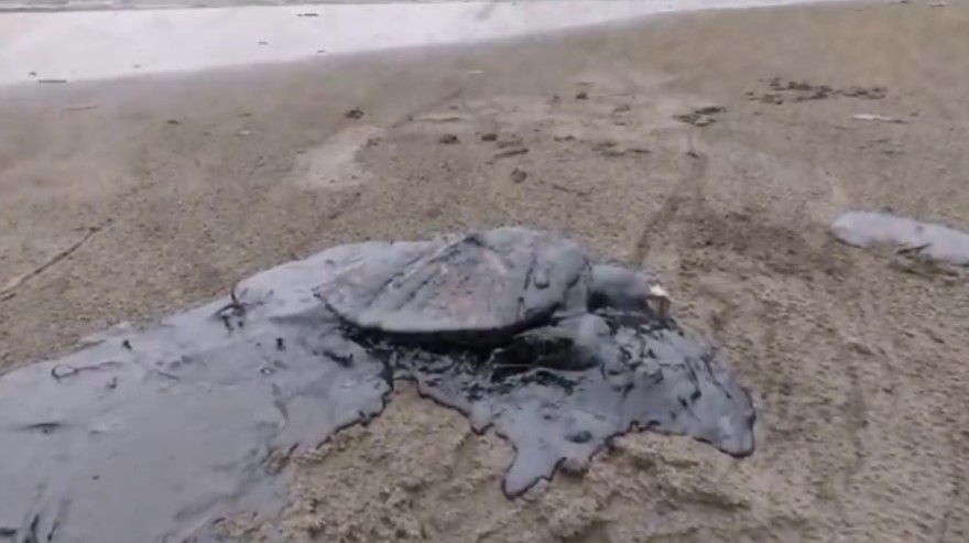 Se reportó el hallazgo de una tortuga muerta cubierta del producto químico y de otros animales marinos fallecidos a a causa de la contaminación provocada por la presencia de petróleo en el agua.