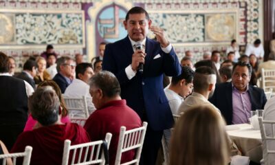 Alejandro Armenta, candidato de la coalición Sigamos Haciendo Historia, Morena, PT, PVEM, Nueva Alianza Puebla y FXM, se reunió con empresarios integrantes del Consejo de Organismos...
